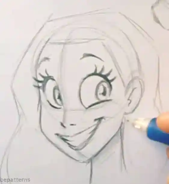 Wrap up your lesson on how to draw a smile by completing the other small yet important parts like the eyelashes, neck, ears, and hair. These details might seem minor, but they frame the expression and pull everything together.
