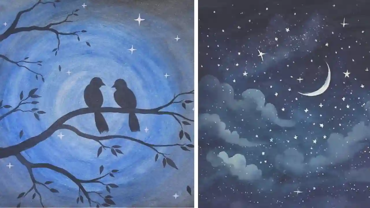 When youโre looking for easy things to paint for beginners, the night sky is one of the simplest that you can find. Youโll usually only need three to five different paint colors so you can really spend time focusing on details and learning to blend light and dark paints together.